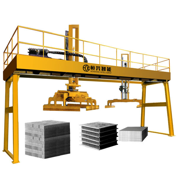 歡迎聯系三興龍門式磚板分離機可將不同型號磚機生產的不同規格的砌塊進行磚板分離碼垛,碼好后用叉車整垛運到堆場養護,也可配合叉車抱夾實現無托盤碼垛并可直接抱磚裝車,大大節省了人工成本。
